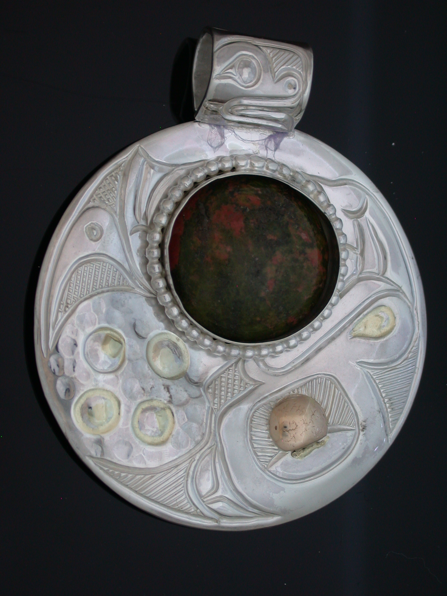 Sterling silver and 14k eye Frog wiith Unikite stone